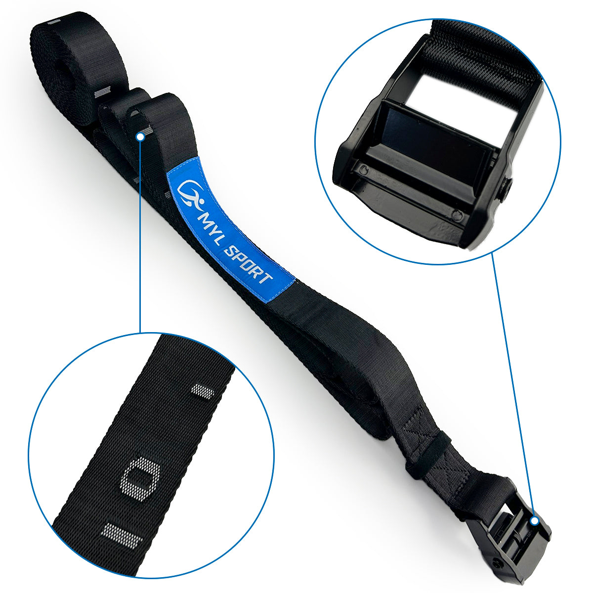 -Hebillas más fuertes: El interior de las hebillas de leva tiene una superficie de contacto dentada, por lo que su fuerza de mordida es más fuerte y segura. Con las hebillas, puede ajustar fácil y libremente la altura de los anillos en las correas largas (14,76 pies cada una).