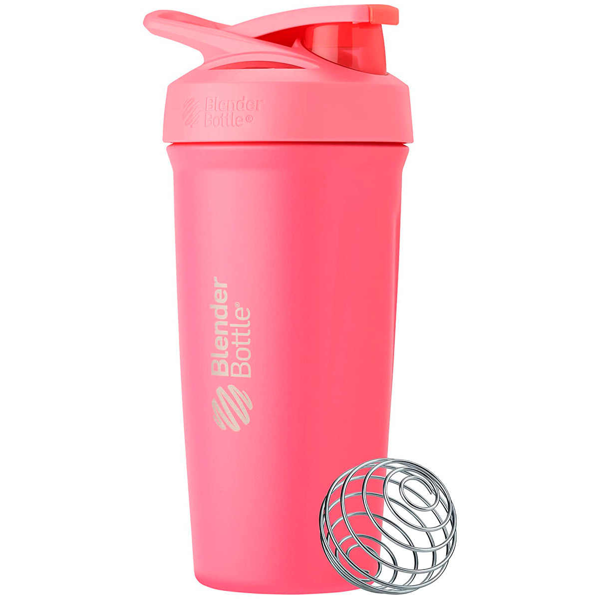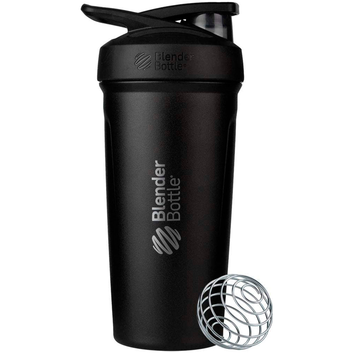 BlenderBottle de acero inoxidable a prueba de derrames, para mezclar suplementos y batidos, cuenta con una tapa abatible con botón de apertura y cierre fácil con un bloqueo deslizante para evitar una apertura accidental